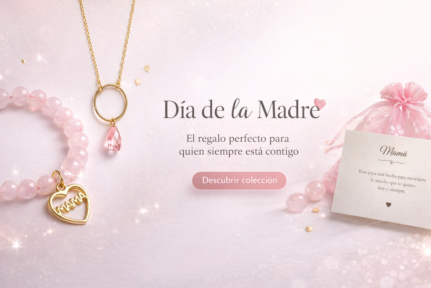 Pulsera para Mama en plata de ley y Baño Oro con Quarzo Rosa.